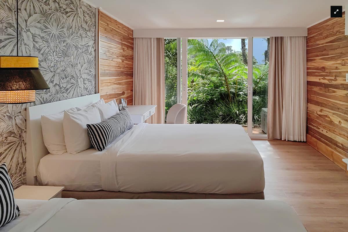 Toucanet Suites face the inspiring Cloud Forest of Monteverde. You can enjoy the best of the privileged location of Monteverde Lodge from your own guest room. The lodge was built within a thick forest property filled with emblematic trees of the highlands of our country, as well as native vegetation, cooling misty clouds, singing birds and the rumor of a nearby forest creek. The wind plays an important role in this natural theater while it crosses over mountains and valleys! Live the magic of our cloud forest from your cozy guest room while enjoying a cup of coffee or perhaps a glass of wine to celebrate the occasion. The Toucanet Suites feature 1 king size bed or 2 Queen beds, and the maximum occupancy is 4 guests. Bedding request cannot be guaranteed, it will be confirmed at check in.
